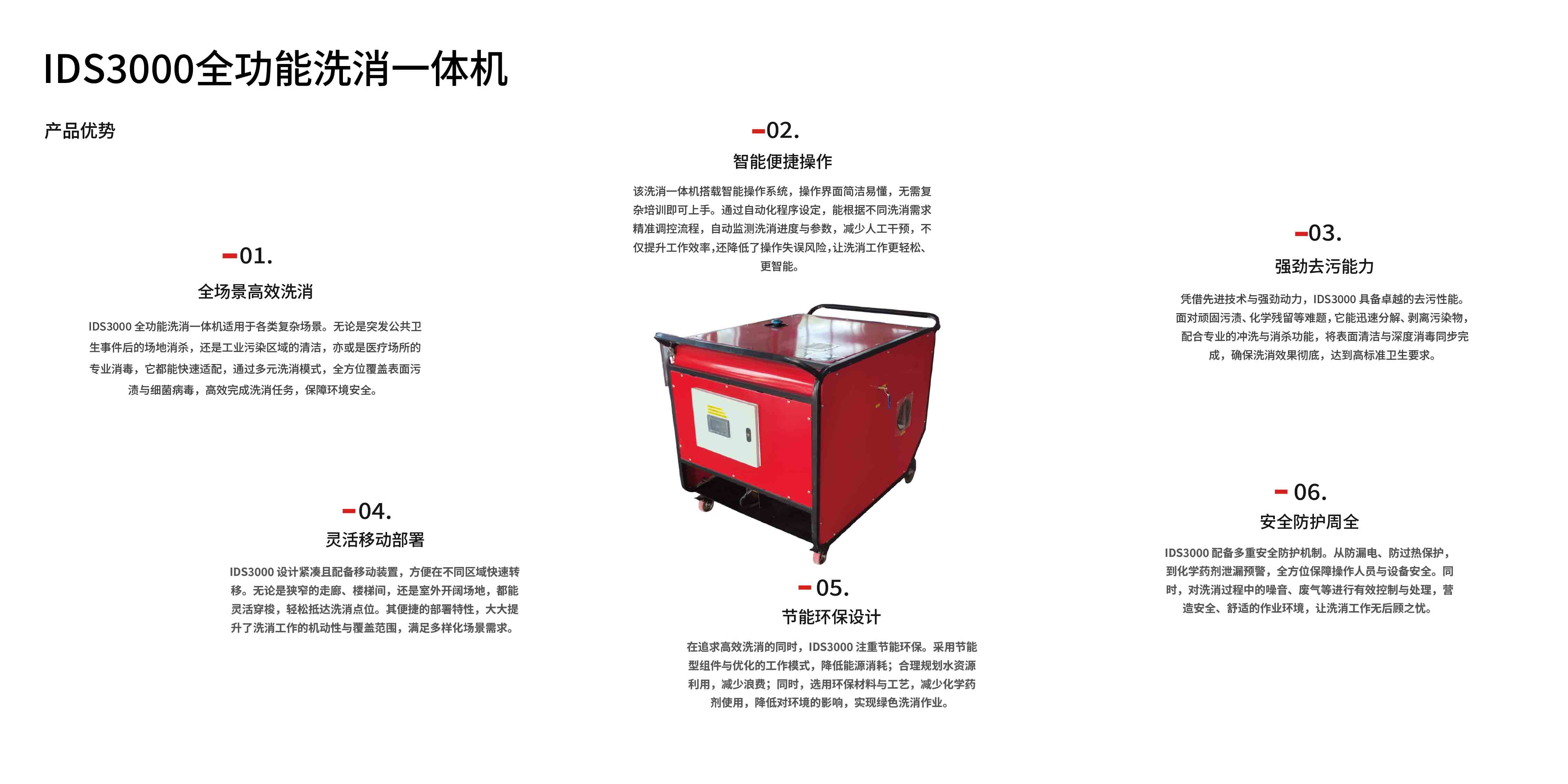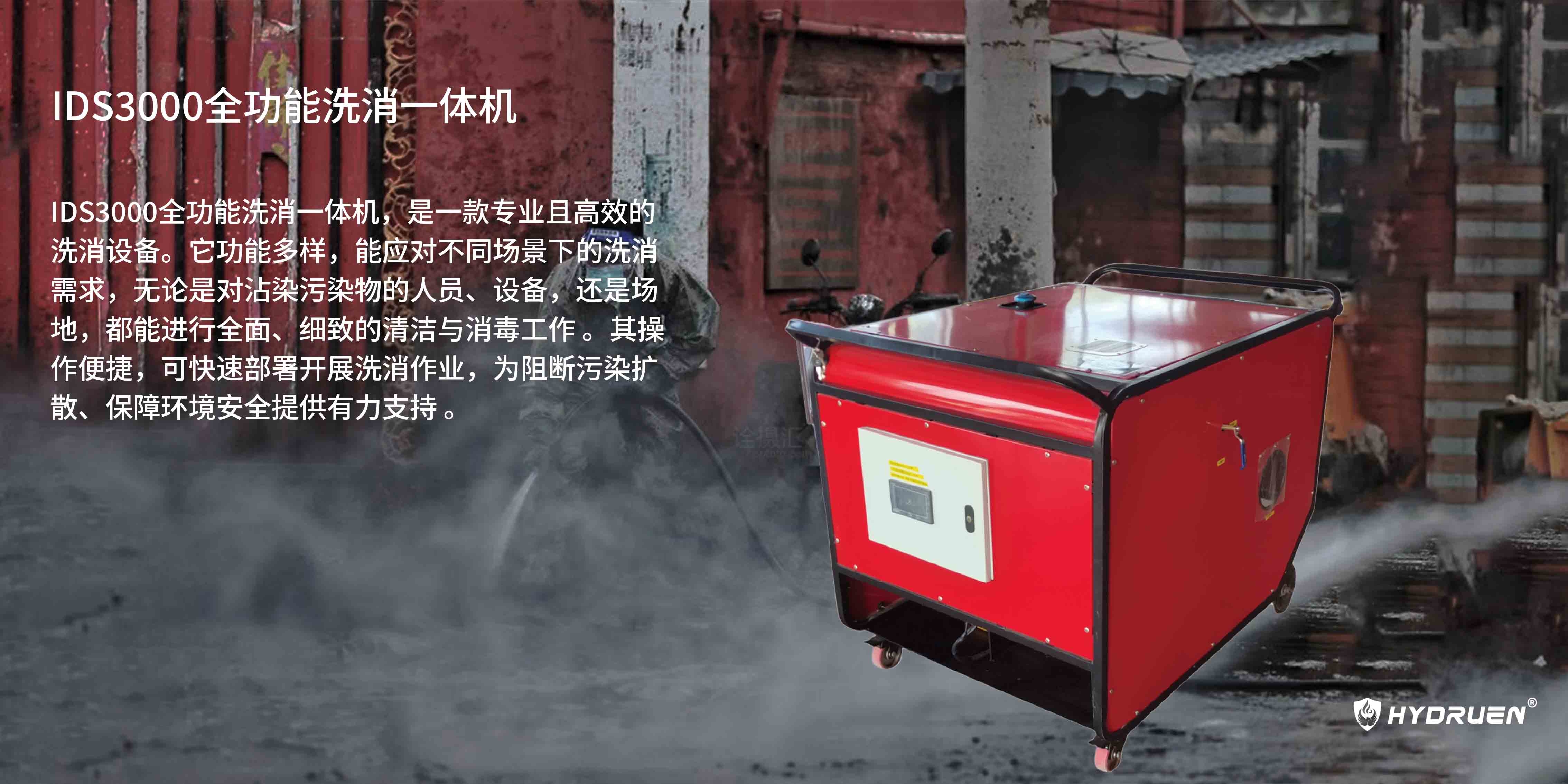 IDS3000全功能洗消一体机,是一款专业且高效的 洗消设备。它功能多样,能应对不同场景下的洗消 需求,无论是对沾染污染物的人员、设备,还是场 地,都能进行全面、细致的清洁与消毒工作 。其操 作便捷,可快速部署开展洗消作业,为阻断污染扩 散、保障环境安全提供有力支持 。